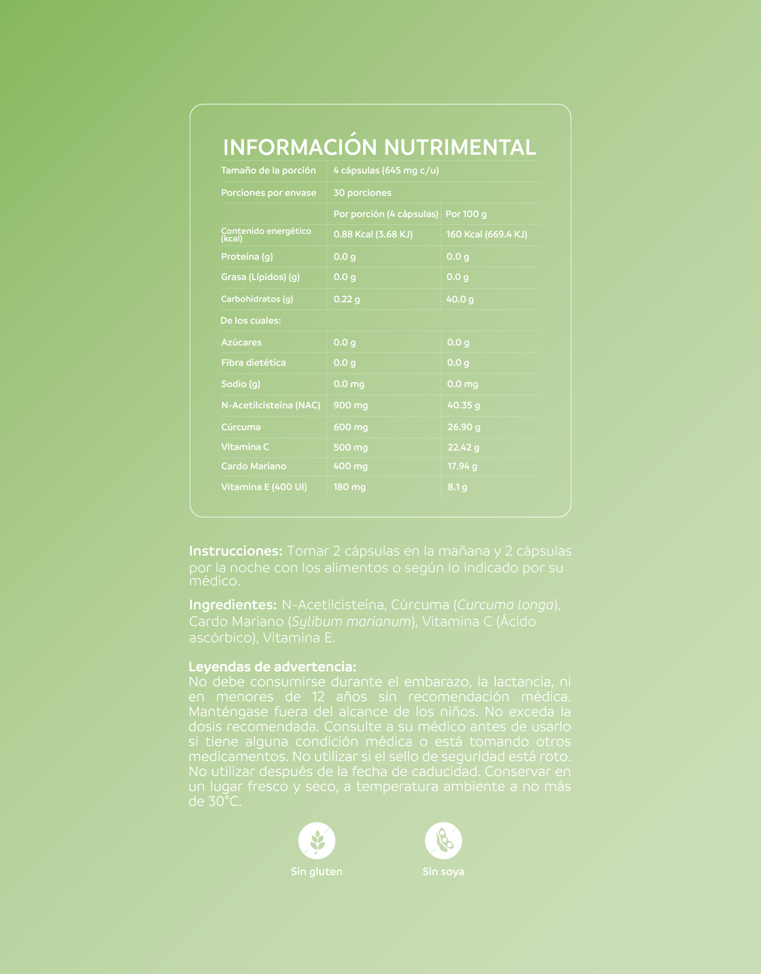 Detox Support con Cúrcuma, Cardo Mariano y Vitaminas C y E – Detox Avanzado