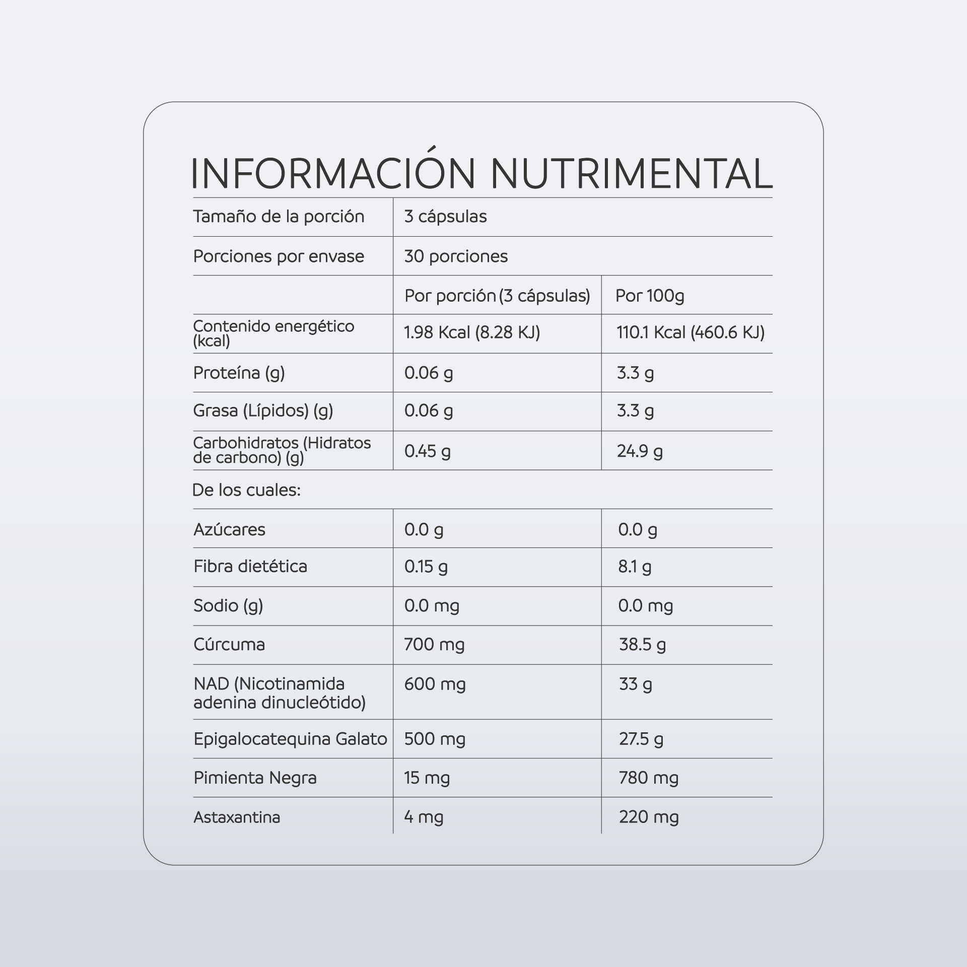 Longevity Support con NAD+, Astaxantina y Cúrcuma – Vitalidad