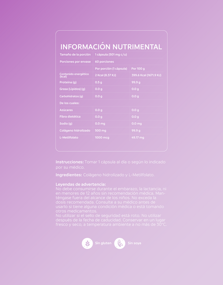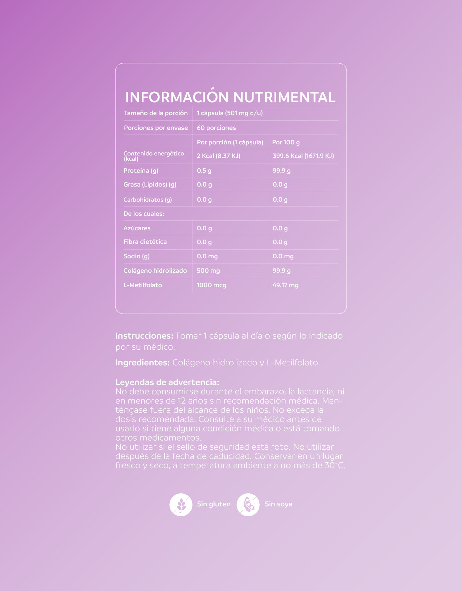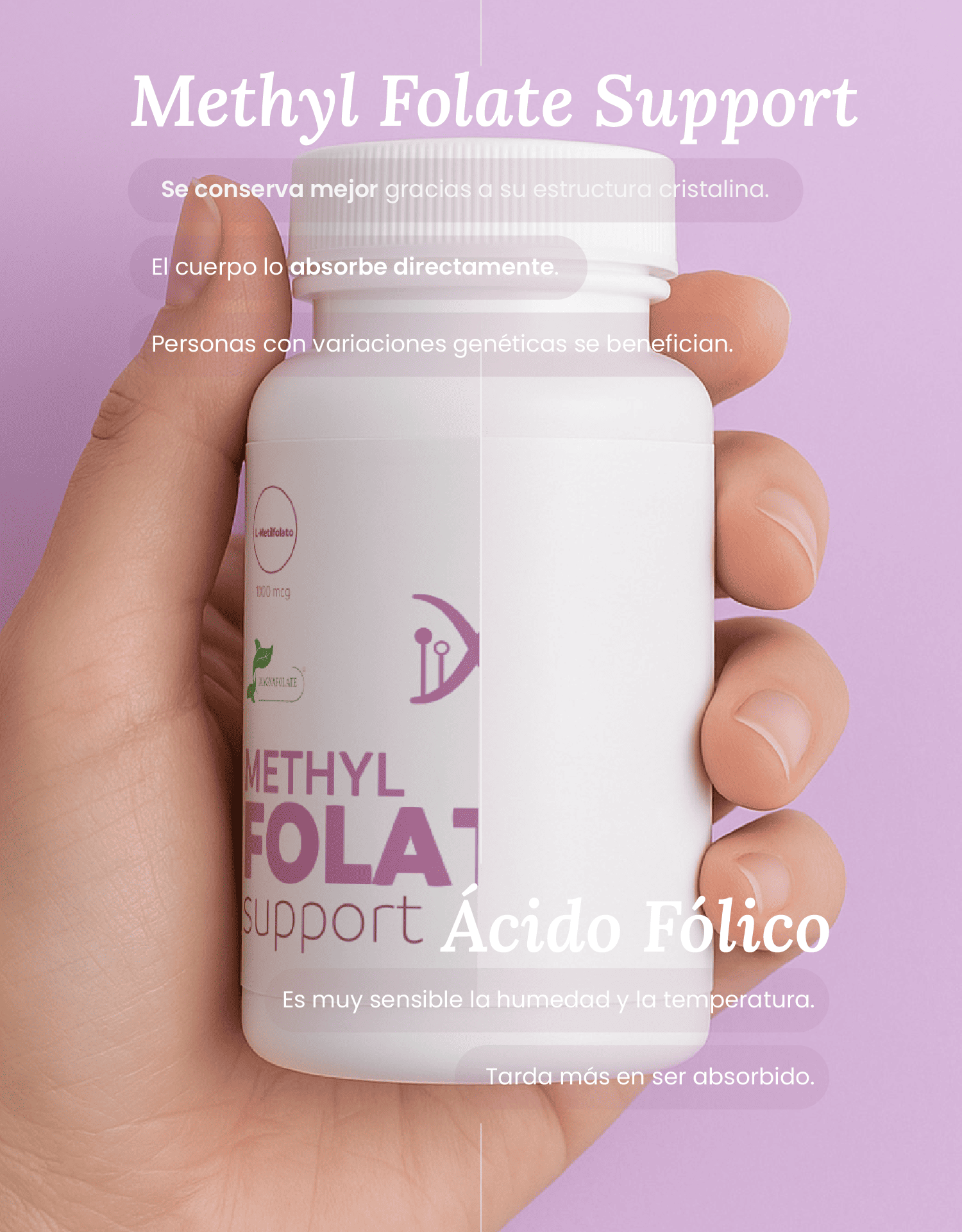 🤰 Apoyo Prenatal Seguro: A diferencia del ácido fólico, no produce UMFA (Ácido Fólico No Metabolizado), reduciendo el riesgo de acumulación y efectos adversos.